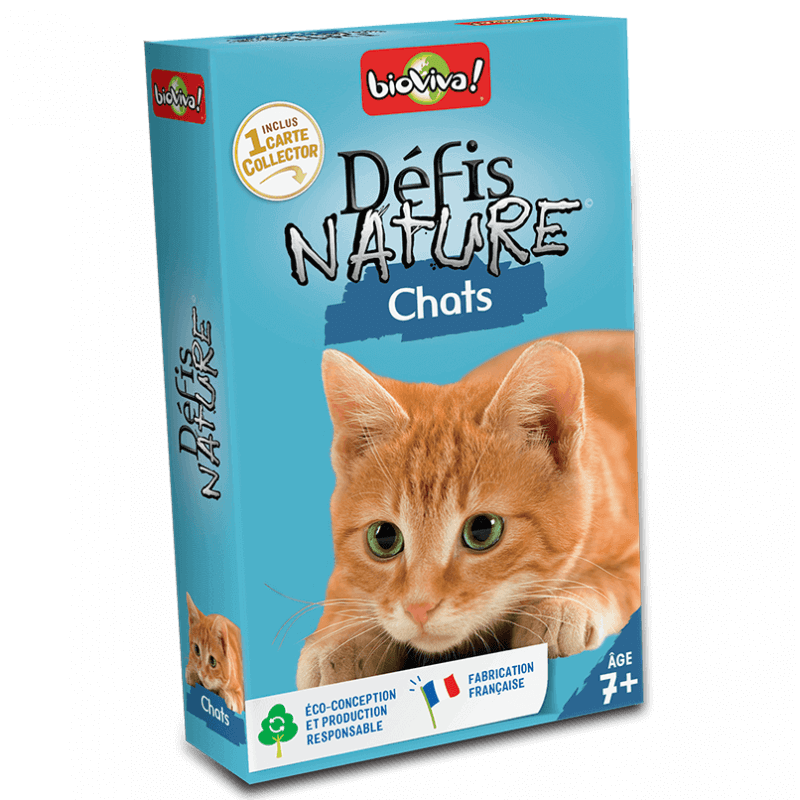 Défis Nature - Chats vous emmène à la rencontre des chats les plus surprenants ! Découvrez les espèces les plus rares, puis pariez sur les points forts de vos animaux pour collecter toutes les cartes du jeu et remporter la partie. Alors, prêts à relever le défi ?